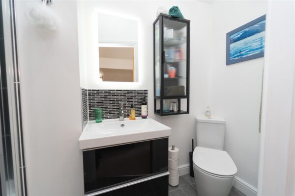 Stairs lead to the first-floor landing, which leads to three double bedrooms and a four-piece family bathroom featuring both a bath and a shower.