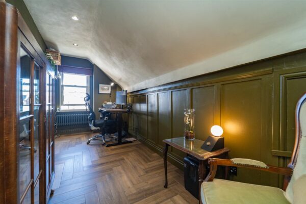 The second-floor landing leads to a good sized third double bedroom with restored original oak flooring and a further study/ bedroom with useful storage into the loft space.
