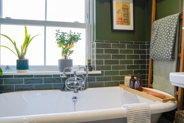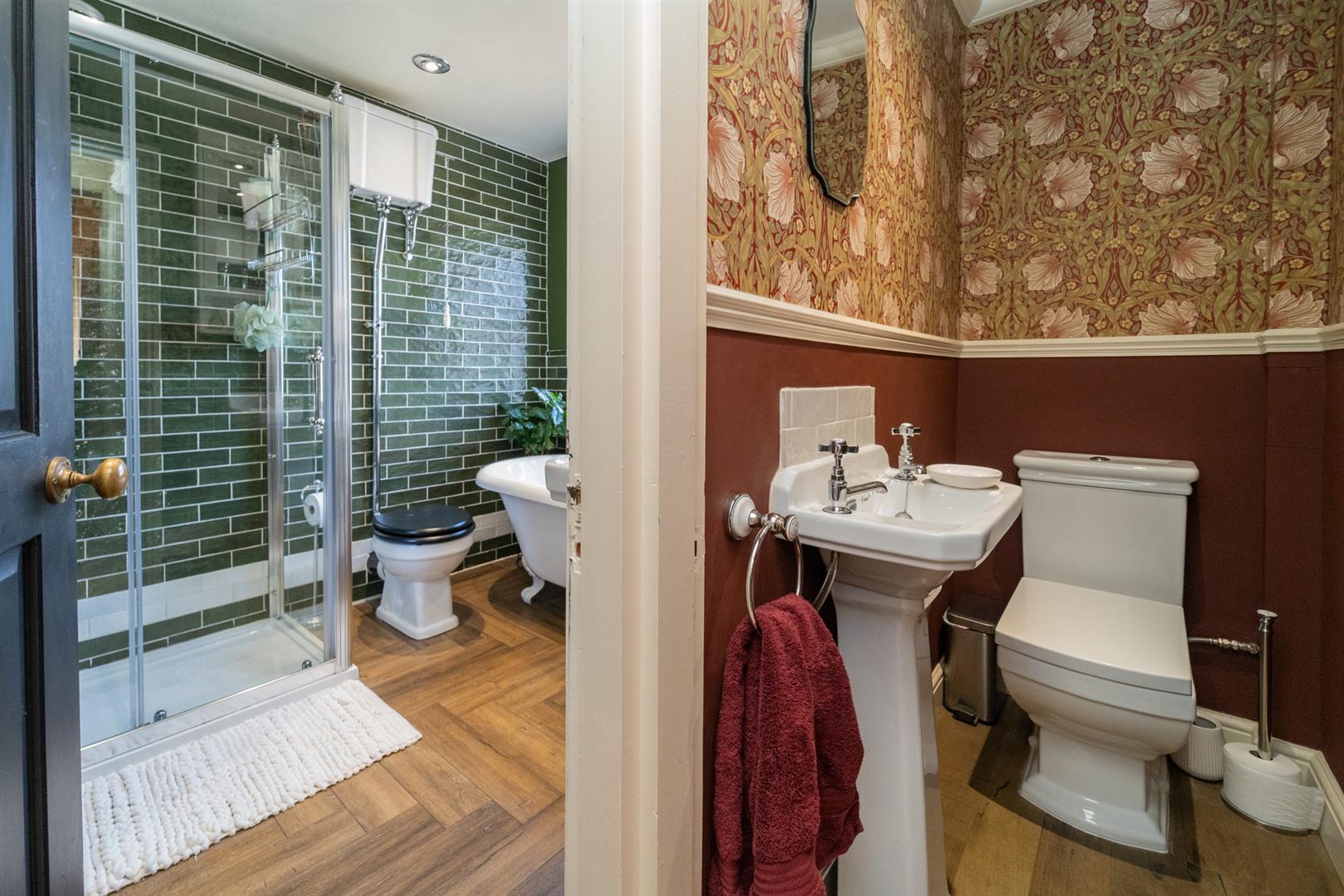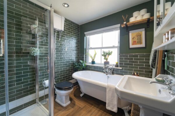 Upstairs, the first-floor hosts two good sized double bedrooms, with bespoke fitted wardrobes in the principal bedroom. A stylish family bathroom boasts both a separate shower and bath, along with modern LVT flooring, while a separate W.C. adds convenience.