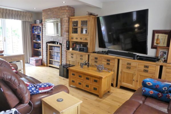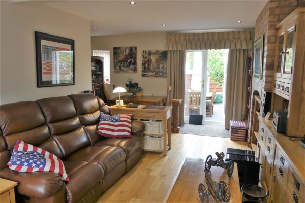 Two UPVC double glazed windows. Ceiling light points. Radiators. Hard wood floor. Feature exposed brick chimney breast. Double doors to rear aspect leading to rear garden and door leading to:
