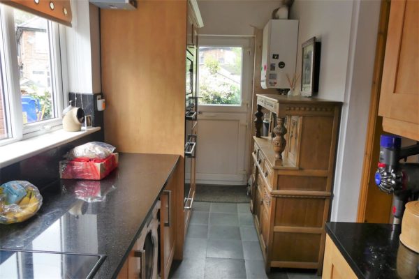 Fitted with a range of base and eye level units. Roll edge work surfaces. Inset sink. Splash back. Integrated oven, hob and washing machine. Wall mounted boiler. Ceiling light points. Two UPVC double glazed windows and door to rear aspect leading to rear yard.