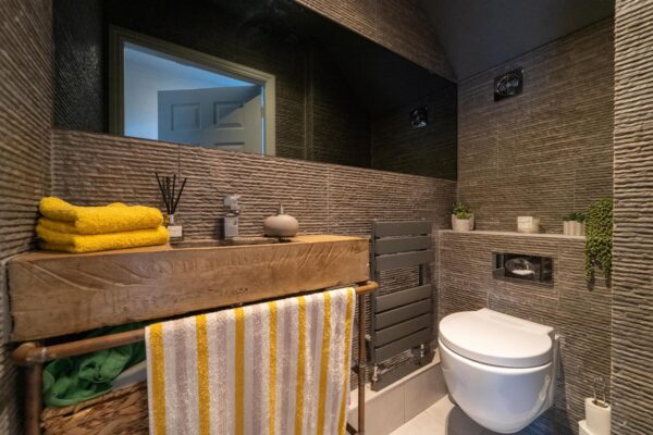 The first floor offers a spacious lounge with engineered oak flooring and a well-proportioned double bedroom. The top floor comprises the master bedroom with a stylish three-piece en-suite featuring a heated mirror and double shower, an additional double bedroom, and a modern family bathroom complete with overhead shower, Bluetooth speakers and feature lighting.