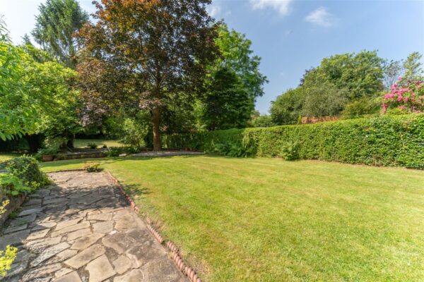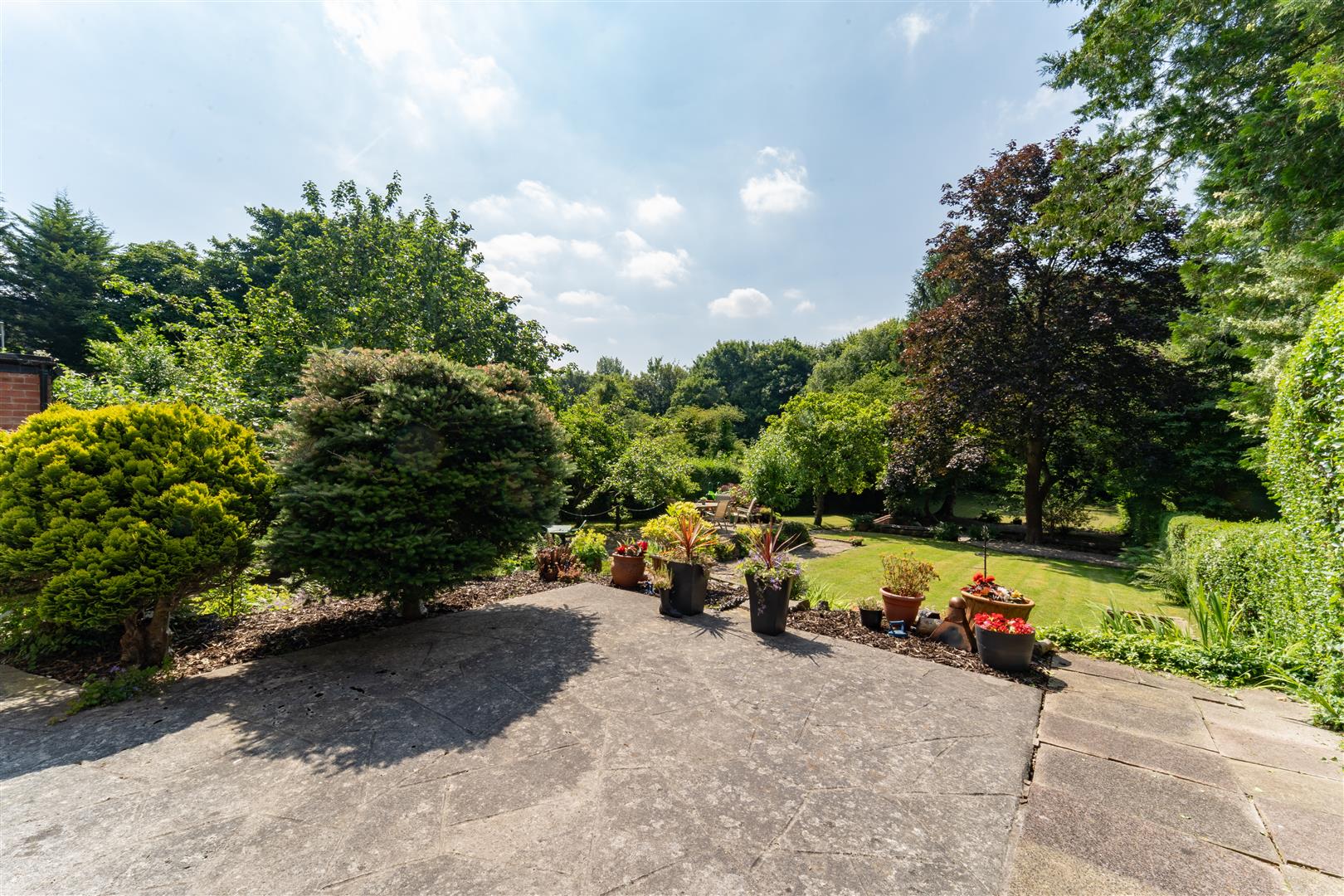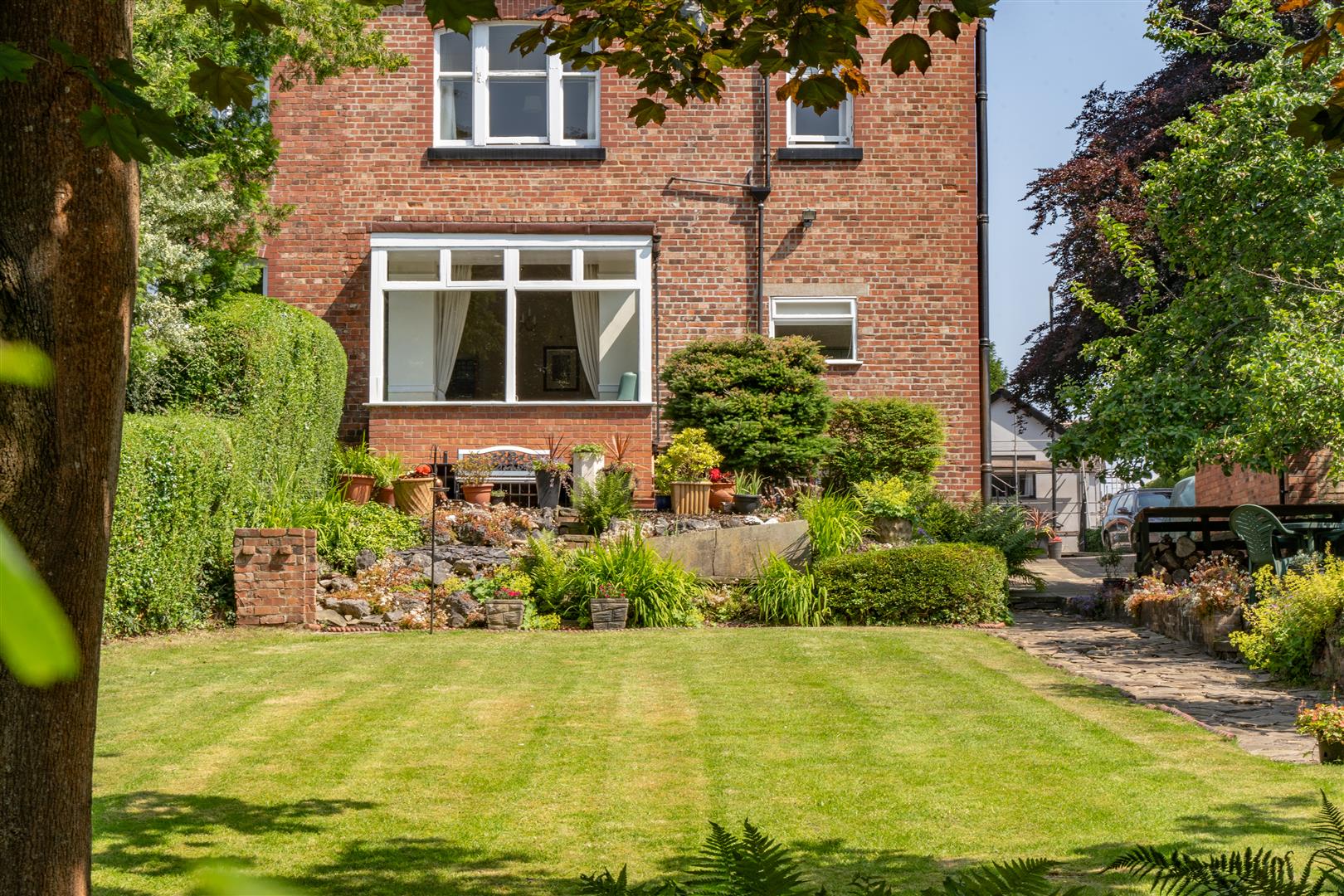 A charming low-level brick boundary wall features decorative iron pedestrian gates, inviting entry to a lawned front garden. A decorative gravel driveway providing ample off-road parking for a number of vehicles. To the side there is a driveway leading to a useful detached garage. To the rear of the property, a sizable split lawned garden, enclosed by mature hedgerows with the neighbouring properties. Flowerbeds beautifully line the lawn, additionally, a raised patio area offers the perfect spot for seating and relaxation. There is planning permission with Trafford council no: 112419/HHA/23 - Erection of single storey detached granny annexe to rear of dwelling.
