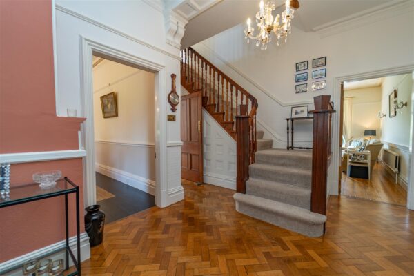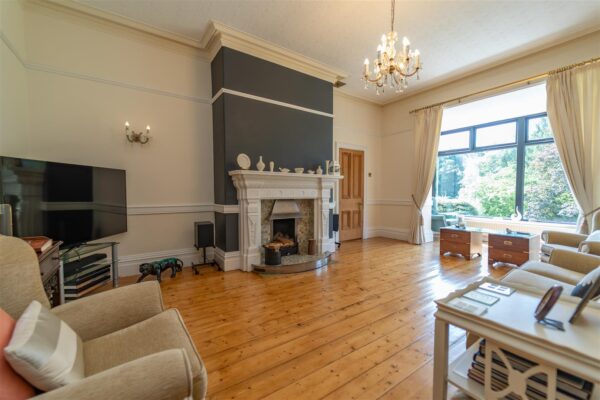 Entry is at ground level, a porch, leading through to an impressive entrance reception hallway with a stunning stained and leaded glazed wooden door, solid wooden flooring, which has access to all reception rooms. An inner hallway leading to a downstairs W.C and chamber cellars, a fitted kitchen/breakfast room to the rear aspect with access into the lounge with a box bay window with views into the rear garden. There is a dining room with a stained and leaded bay window to the front aspect with views over the lawned garden and gravel driveway.