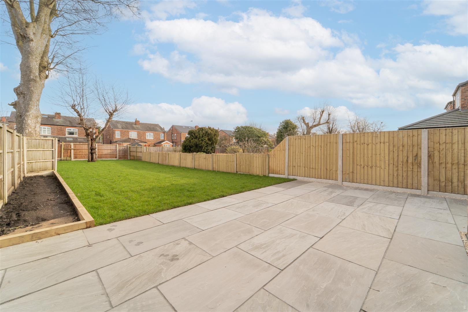 Fresh landscaping with new turf and paving to the rear and double drive and herringbone path to the front.
