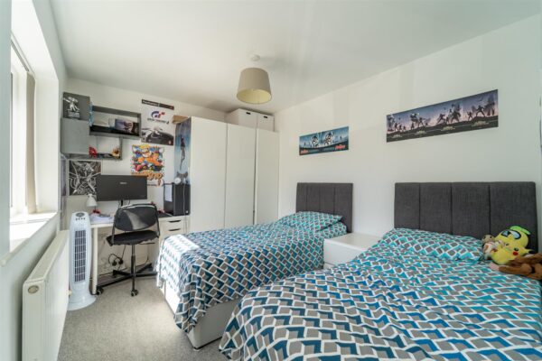 To the front of the property there is a double driveway offering convenient off-road parking for multiple vehicles. A timber gate leads through to a large rear garden, mainly lawned with a patio area ideal for a table and chairs. Enclosed by timber fencing with the neighbouring properties.