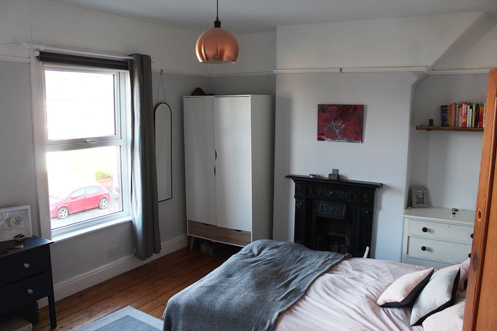 Master bedroom fitted with Two UPVC double glazed windows to the front aspect, featuring Wall mounted radiator. Feature fire place. Picture rail and ceiling light point. Exposed , varnished wooden flooring.