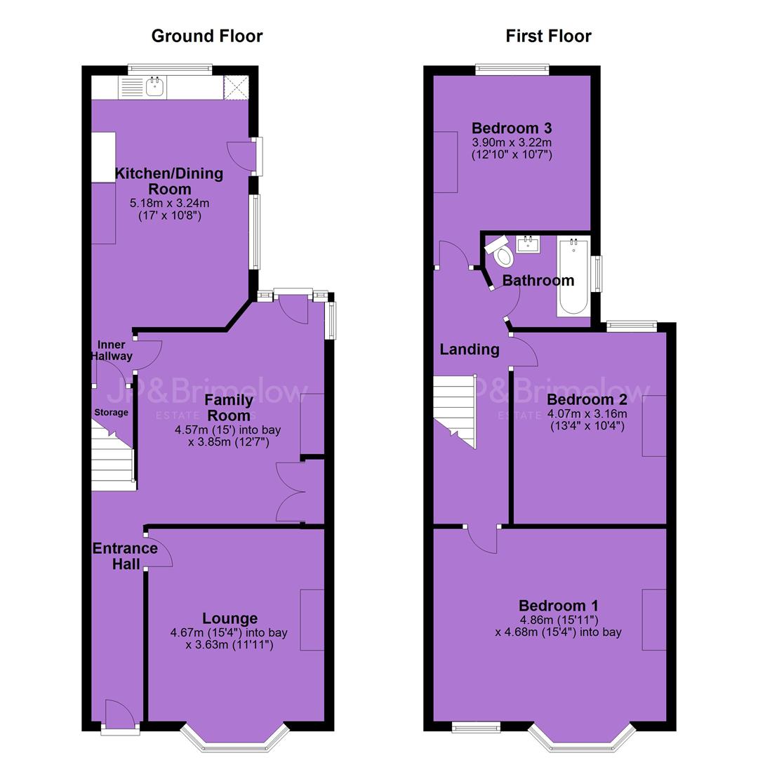 The well-planned accommodation comprises; entrance hall, a lounge with a bay window to the front aspect with an attractive fireplace, a family room with access out onto the patio area, inner hallway leading to a fitted kitchen/dining room with access out into the rear enclosed lawned garden completes the ground floor.