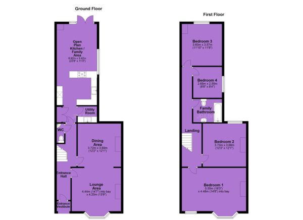 Stairs lead to the first-floor landing, providing access to four generously sized double bedrooms and a stylishly appointed three-piece bathroom.