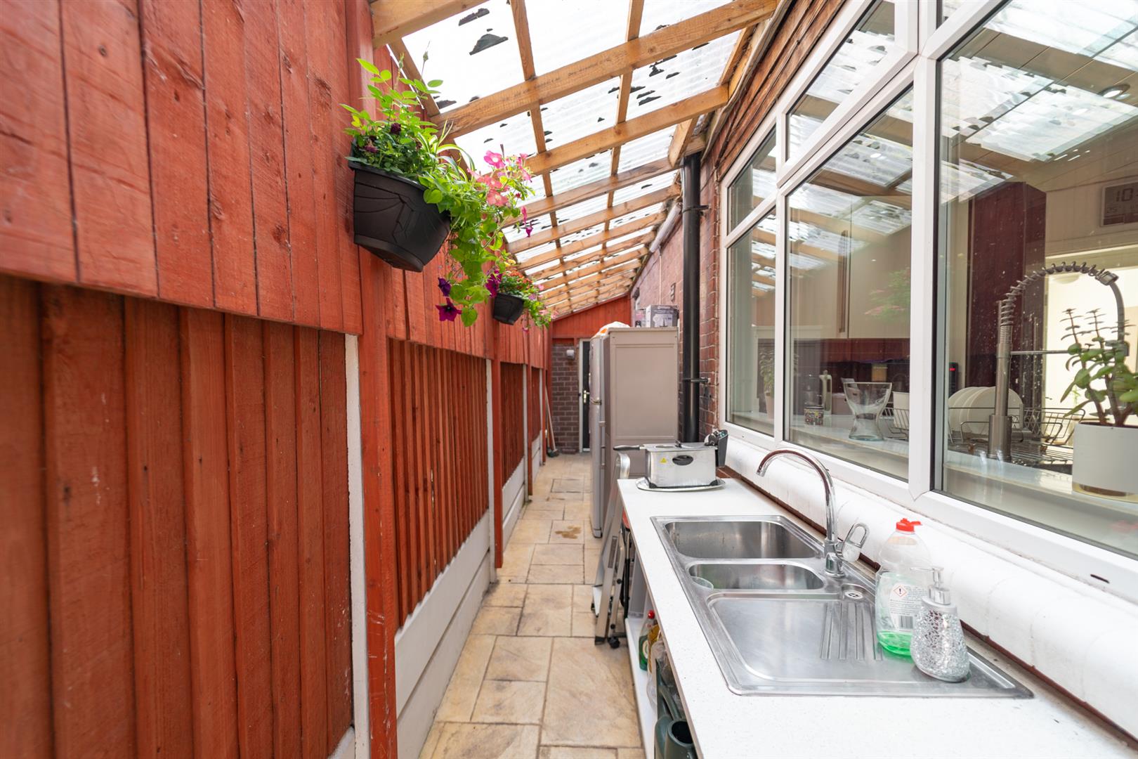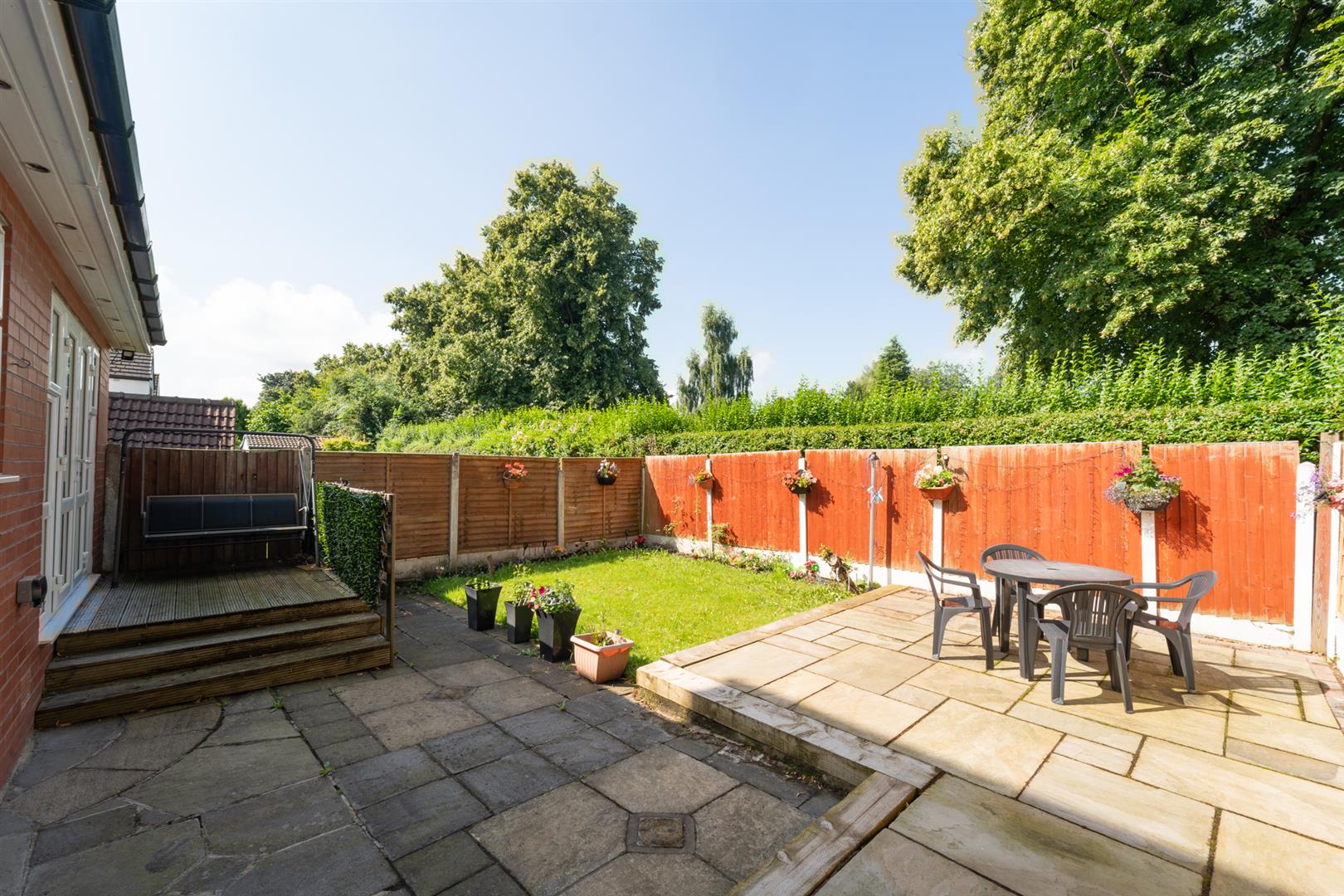 To the front aspect there is a low-level brick boundary wall with timber panelled fencing with the neighbouring properties. Raised and planted flower beds and a driveway providing off road parking. To the side aspect there is a door leading to a covered utility/kitchen area. To the rear aspect there is an enclosed lawned garden with timber panelled fencing with the neighbouring properties. Raised decked patio terrace ideal for a table and chairs.