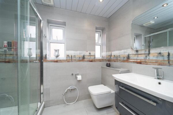 Whilst to the second floor reveals a landing with a storage cupboard housing the hot water tank, a white three-piece shower room and two further double bedrooms, one benefits from a walk-in wardrobe.
