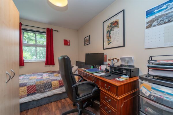 To the front aspect there are well maintained lawned communal gardens. Well stocked flower beds. A paved path leading to the communal front door. Resident parking.