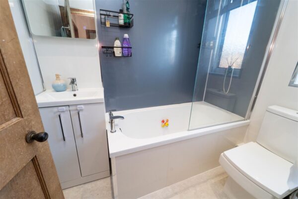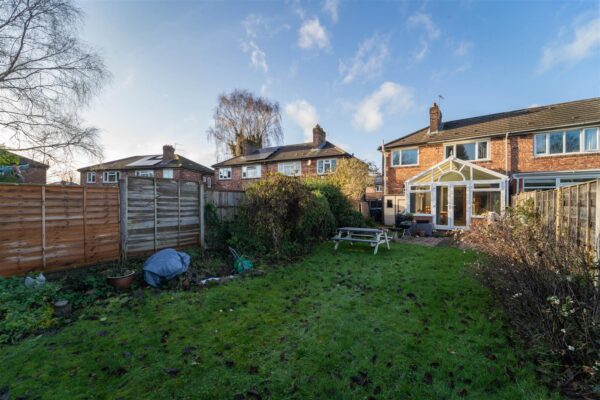 The property enjoys a private, lawned rear garden, offering a peaceful outdoor space ideal for relaxing or entertaining. With a mix of gravelled and planted areas. While the front offers a driveway providing off road parking for multiple vehicles, behind a brick low-level wall.