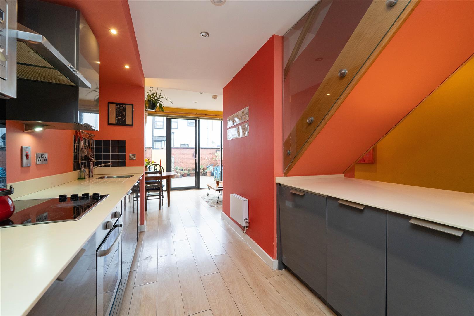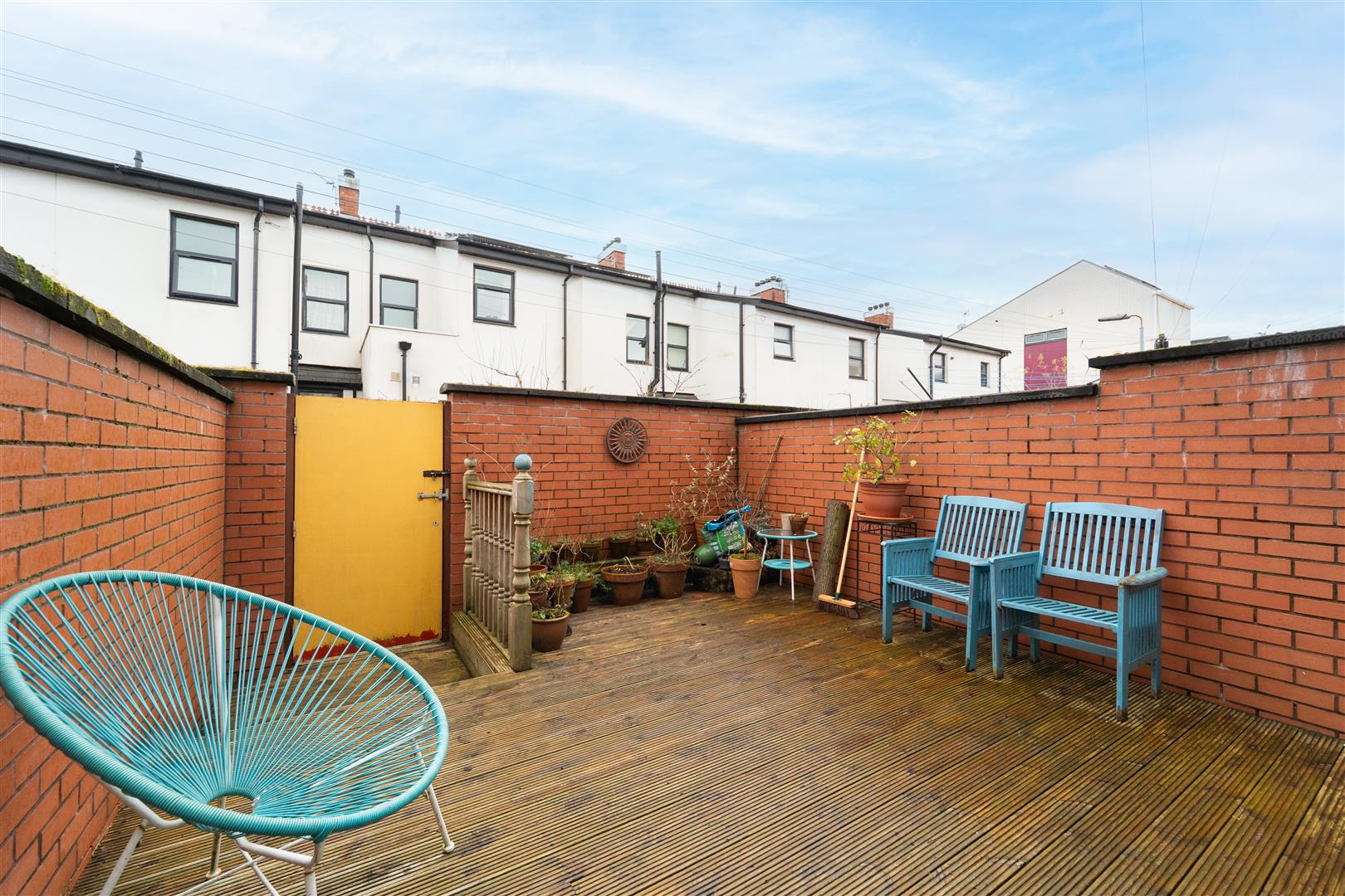 To the rear aspect there is a decked garden, perfect for outdoor seating, dining and entertaining. The garden is enclosed with brick-built walls to the neighbouring properties, and has a timber gate allowing access into the communal service alley.