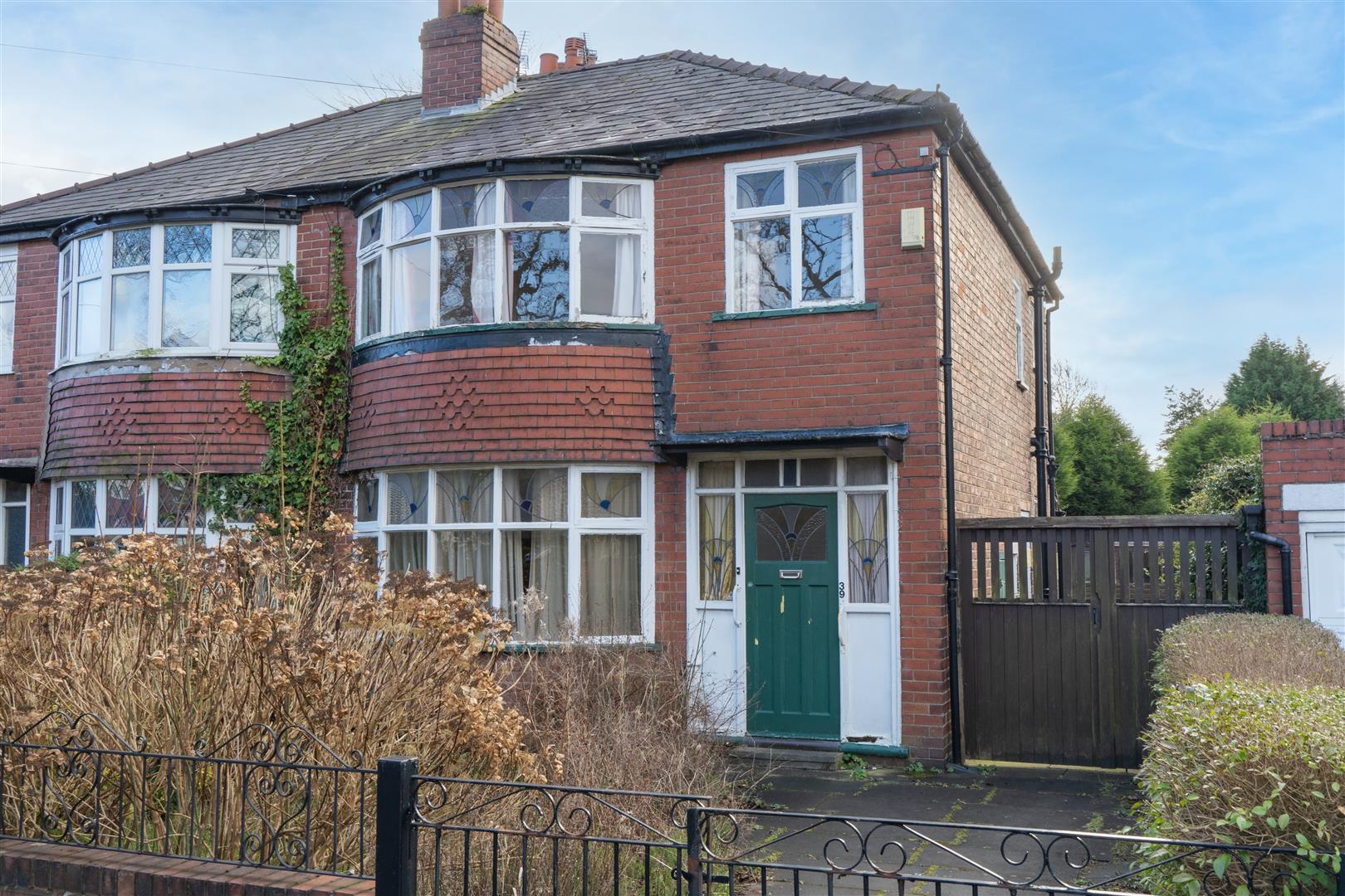 ***VIDEO TOUR AVAILABLE*** A well-proportioned semi-detached property with THREE BEDROOMS and a bay front, situated on a tree lined residential road here in Firswood off Great Stone Road. IN NEED OF COSMETIC UPDATING THROUGHOUT. Within easy walking distance of Chorlton Centre, just a short drive from Manchester City Centre and nearby to both Firswood and Old Trafford Metrolink stations, giving you direct access to Manchester City Centre, Media City, and Manchester International Airport. The well-planned accommodation consists of; An entrance hall, a dining room with bay window to the front aspect, a good-sized lounge with views out into the rear enclosed garden, a kitchen with a useful storage cupboard and access out into the rear enclosed garden completes the ground floor. To the first-floor a landing reveals three bedrooms and a three-piece bathroom suite. The property benefits from electric heating, stained and leaded windows, a gated driveway providing off road parking and a rear enclosed lawned garden. The property is also close to several good Trafford Primary Schools. OFFERED WITH NO VENDOR CHAIN.
