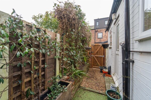 To front aspect there is a low level brick boundary wall and a paved path leading to the front door. Planted flowerbeds and timber picket fence with the neighbouring property. To the rear aspect there is a courtyard style garden with a timber fence and brick boundary wall. A timber gate with access out into the rear service alleyway. A useful wall mounted security light and an Outside water tap. Raised and planted flower beds.