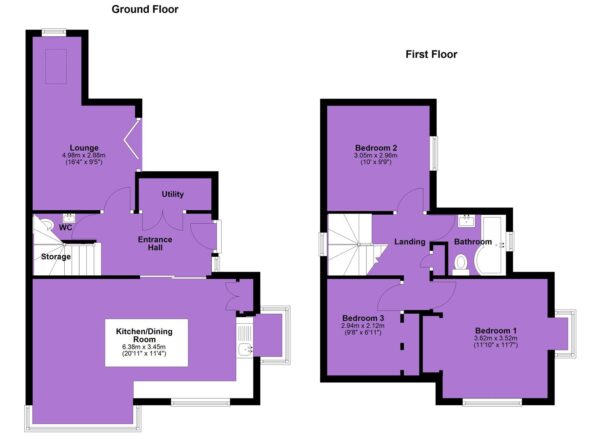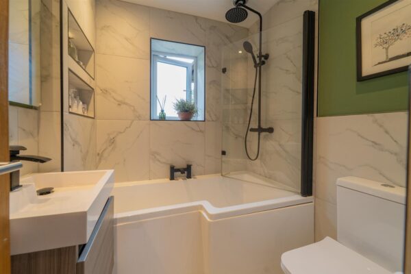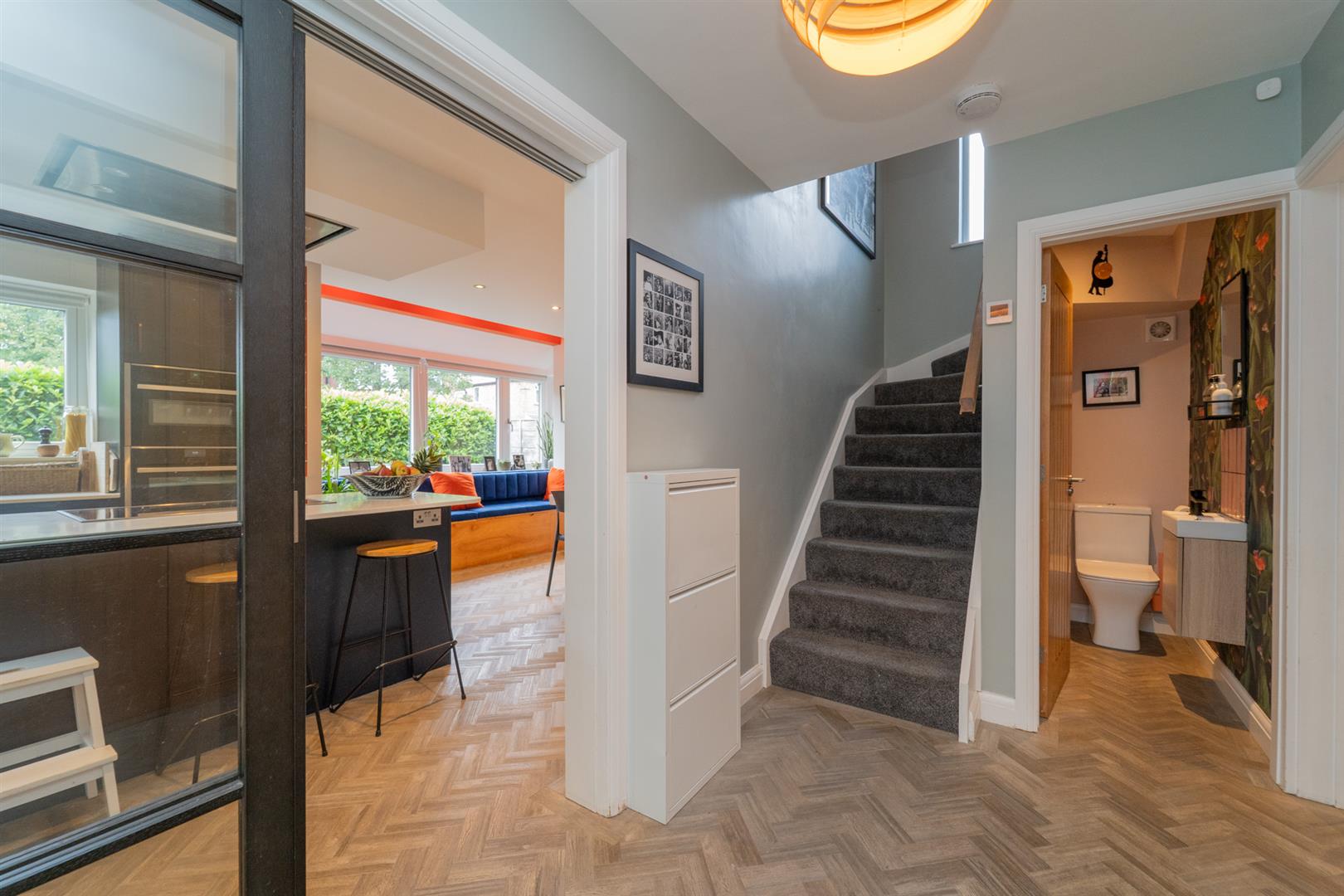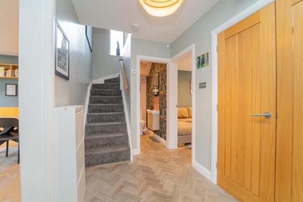 Stairs leading to the first floor reveal three well-proportioned bedrooms, and a white three-piece bathroom suite completing this family home.