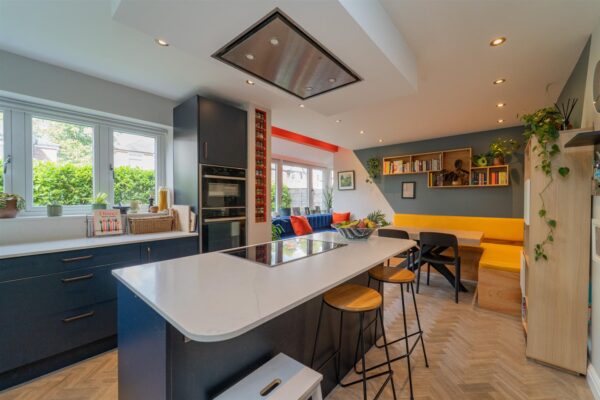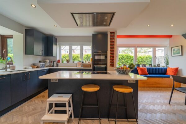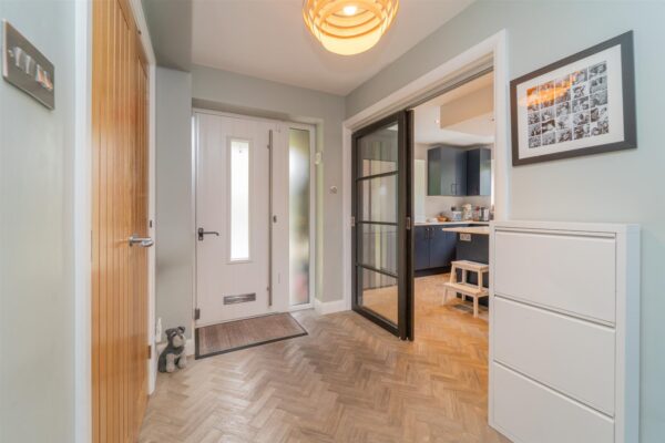 In brief this fabulous property consists of; an entrance hall with useful utility area and W.C, a modern and fitted kitchen complete with central breakfast island and views out into the rear garden, while the dining area offers a bespoke seating area. A delightful lounge benefitting from herringbone flooring and bi-fold doors seamlessly blends the indoor and outdoor space creating a perfect setting for entertaining.