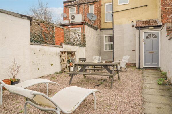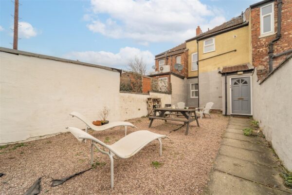 To the front, the property is set behind a low-level brick boundary wall with a pedestrian pathway leading to the main entrance. To the rear, the property benefits from an enclosed courtyard with a gravelled patio area, ideal for a table and chairs.