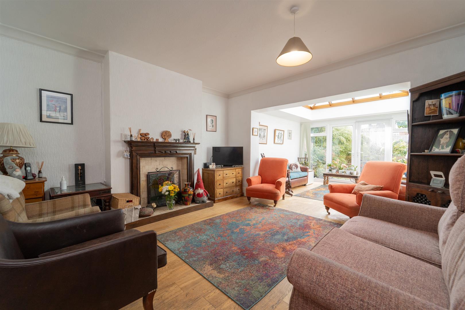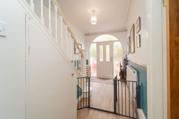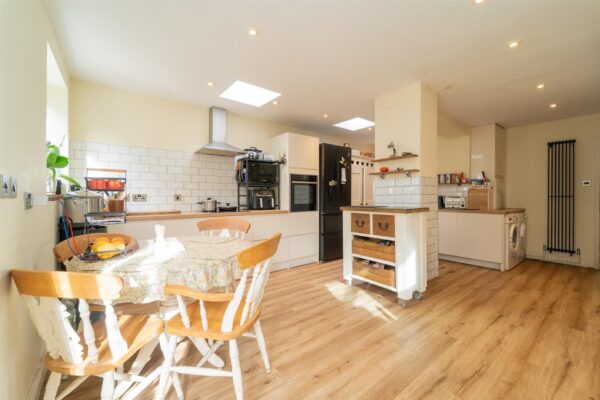 Stepping through the front porch of this light and airy home into the entrance hallway, you’ll find a dining room with a bay window to the front. The lounge opens into a sunroom that leads onto a cosy, secluded patio. At the rear, the extended modern kitchen is fully fitted and enjoys views and access to the garden. A downstairs W.C completes this floor.