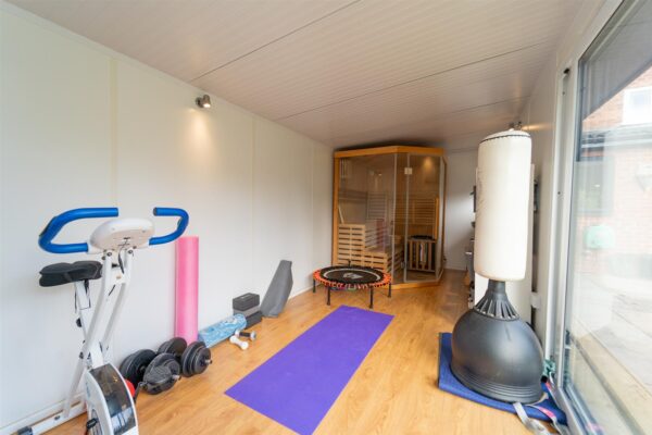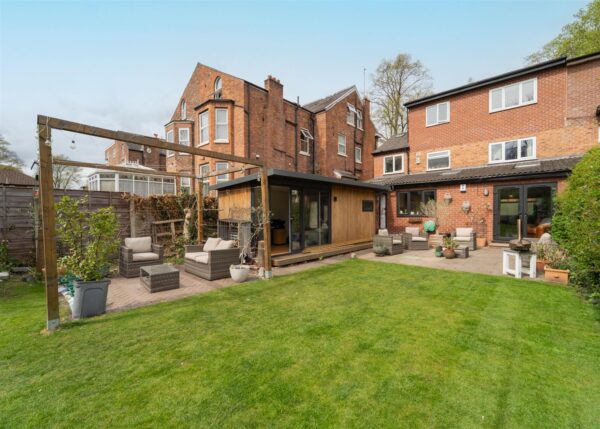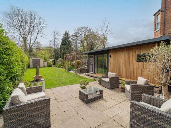 To the front aspect there is a low-level brick boundary wall with mature hedgerow sitting behind creating a sense of privacy. There is a block paved driveway providing off road parking, a bin store is also located in the front garden. To the rear aspect there is a substantial enclosed lawned garden, mature trees/bushes and shrubs sit within the garden. There is a large, detached garden room with underfloor heating currently being used as an office/ gym (available with further negotiations). There is a 300 sq. foot Indian stone patio area and an additional block paved patio with pergola and two electrical sockets located outside of the garden building, making it a perfect area for outdoor dining. To the rear of the garden there is a vegetable patch and workshop/shed. Other benefits within the garden are outdoor lighting and a water tap.