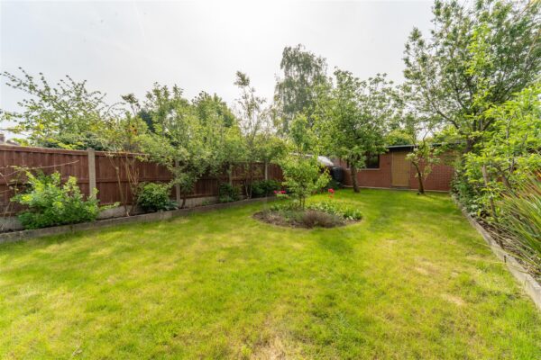 The paved driveway at the front has space for two vehicles and has gated side access to the rear of the property. A lawned south-facing garden and its many fruit trees, flowers and berry plants, as well as the raised decked patio off the kitchen and dining room, ideal for al fresco dining or having relaxing family time. At the back of the garden is a large brick outbuilding, wired for electricity and a potential connection to the water supply.