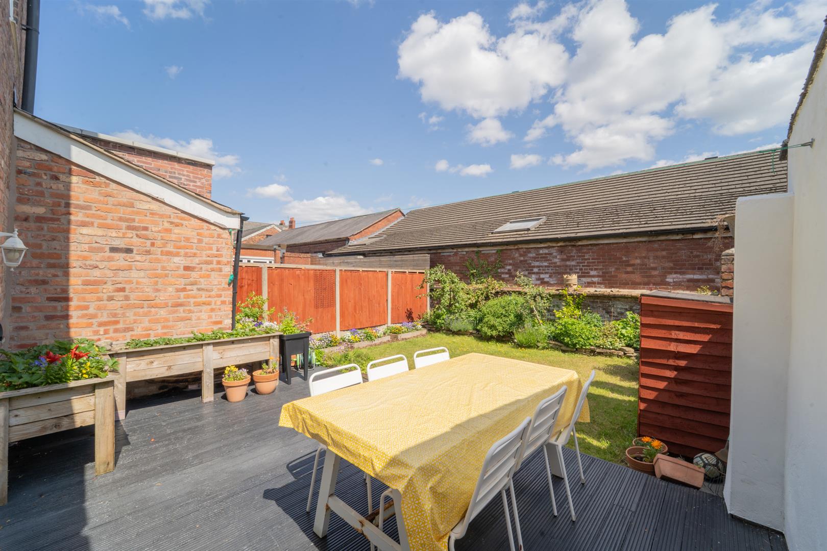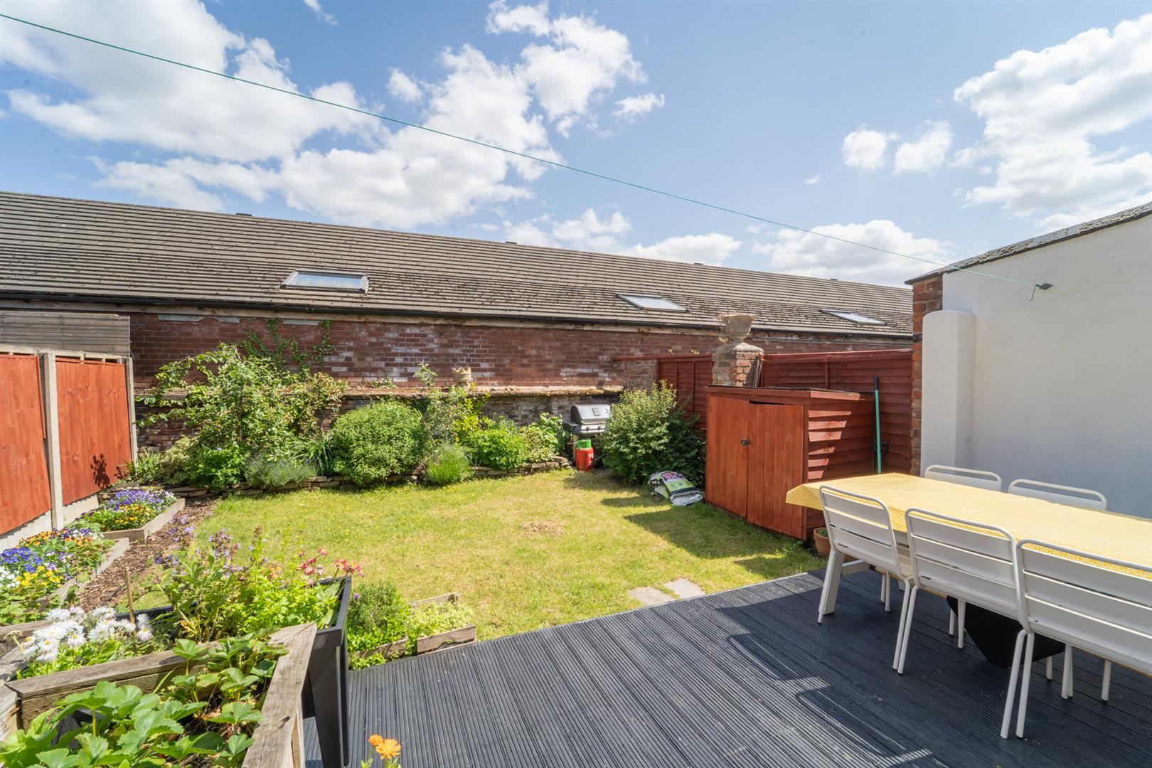 Externally the property benefits from a driveway with a Smart Zappi EV charger, a low level brick boundary wall with planted flower beds. To the side aspect there are double gates leading to the shared driveway ideal for recycling bins and a timber storage bike shed. To the rear there is a raised decked patio terrace ideal for a table and chairs. Mainly laid to lawn with well stocked and planted flower beds.