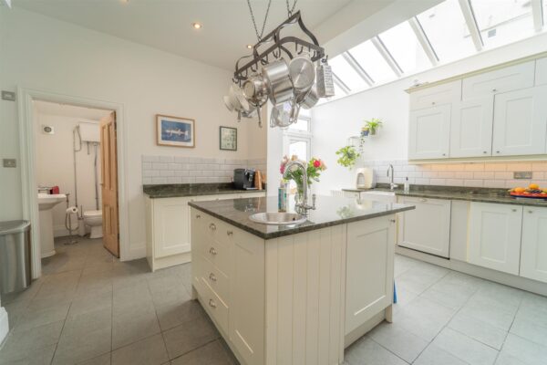 The expansive accommodation consists of an entrance hallway, a lounge with a bay window to the front aspect with bespoke fitted alcove shelves and a cabinet, a dining room with French doors leading into the extended fitted kitchen/breakfast room with impressive glazed feature sky light and access out into the rear garden. There is a two-piece W.C that completes this impressive ground floor.