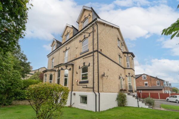 To the front aspect there is a low-level brick boundary wall, stairs lead up to the communal entrance. There are well maintained communal gardens and communal off-road parking to the rear aspect which can be accessed off School Grove.
