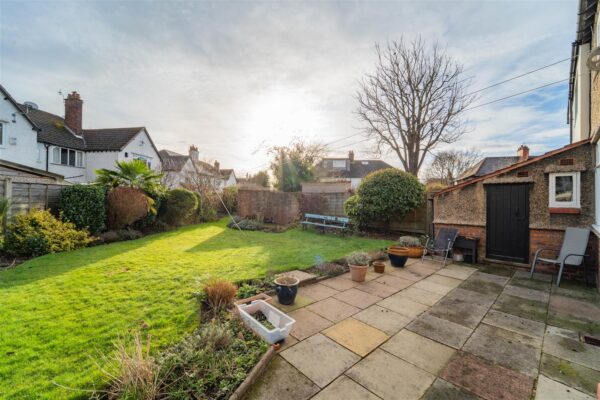To the front aspect there is a low-level brick boundary wall, a lawned garden with shrubs and bushes, and a drive way providing off road parking for multiple vehicles. To the side aspect there is access into the large detached garage. To the rear aspect there is a generous sized south facing lawned garden with a variety of bushes, shrubs and plants. The garden is enclosed with timber fencing to the neighbouring properties.