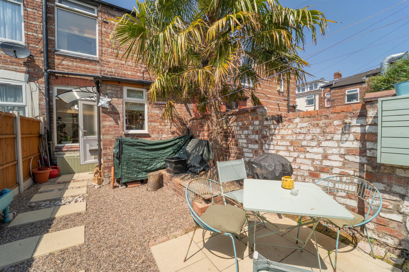 To the front aspect there is a low-level brick boundary wall with a mature hedgerow, a pedestrian gate opens onto a path leading to the front door. To the rear aspect there is a pea pebble courtyard, along with a patio area ideal with a table and chairs. The courtyard is enclosed with brick-built walls to the neighbouring properties.