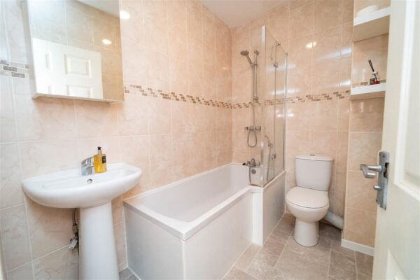 To the front aspect there is a low-level brick boundary wall with a mainly laid to lawn garden complete with mature and planted flower beds with a variety of shrubs and bushes. To the rear aspect there is a communal car park with allocated parking spaces and an enclosed well-maintained communal lawned garden.