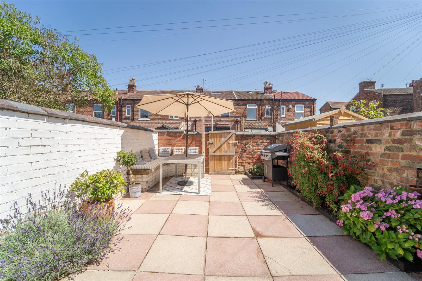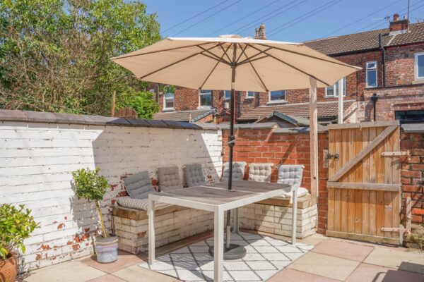 To the front aspect there is a low-level brick boundary wall, a path leads to the front door. To the rear aspect there is a delightful paved garden ideal for outdoor dining, there are planted flower beds with a selection of mature bushes, plants and shrubs. The garden is enclosed with brick-built walls to the neighbouring properties. A gate allows access into the communal service alley.