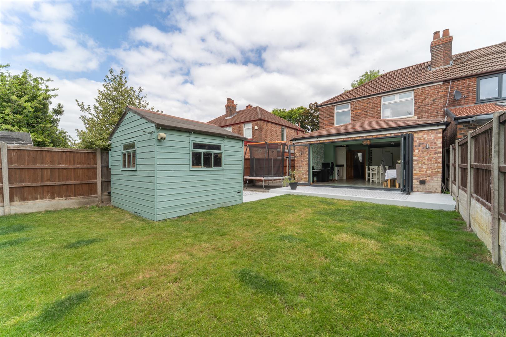 To the front aspect there is a low-level brick boundary wall, a paved driveway providing off road parking for multiple vehicles and timber double gates leading to the side aspect, allowing access into the rear garden. There is a large lawned and enclosed garden to the rear with a useful storage shed. Timber fencing with the neighbouring properties.