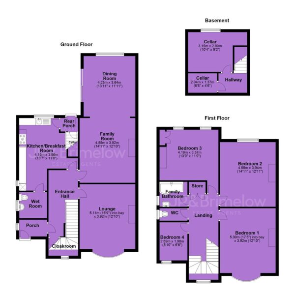 In brief, the well-planned accommodation comprises of; A porch, a reception hall, under stairs cloak room, a lounge with bay window to the front aspect, an extended family room leading to a dining room with access out into the rear enclosed lawned garden, a fitted kitchen/breakfast room, a downstairs Wet room, a rear porch with access into the rear garden and stairs leading down to the useful cellar.