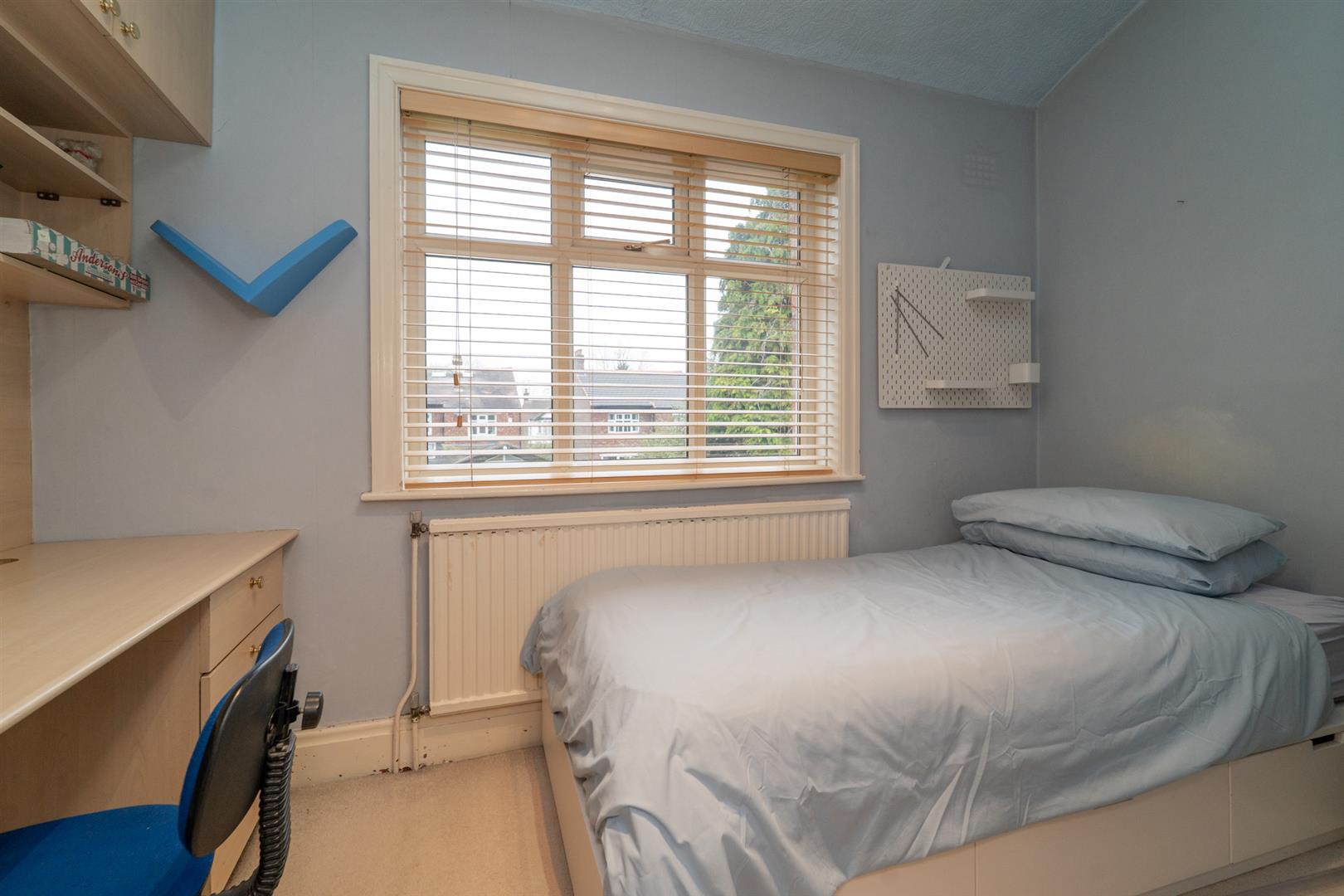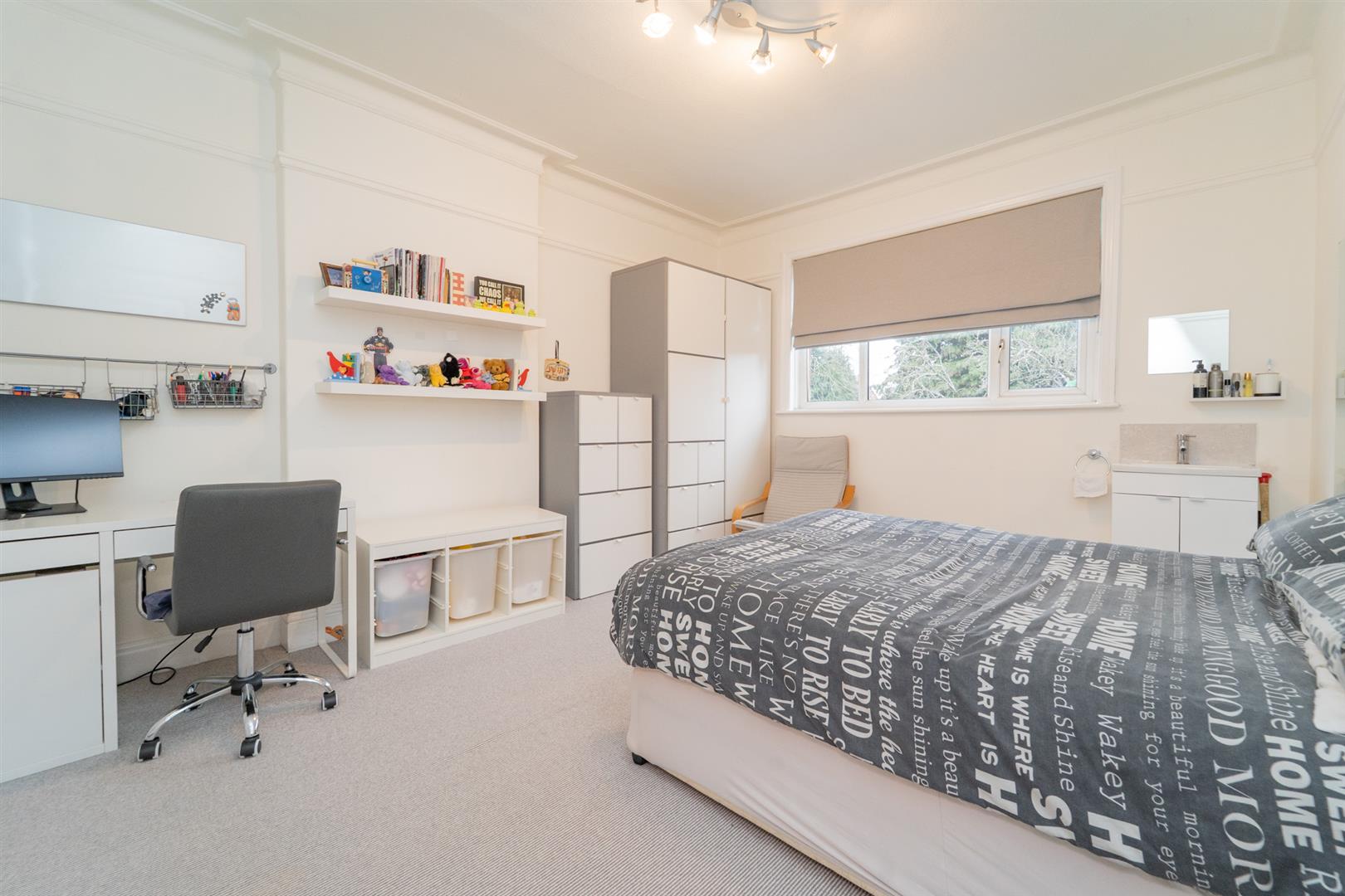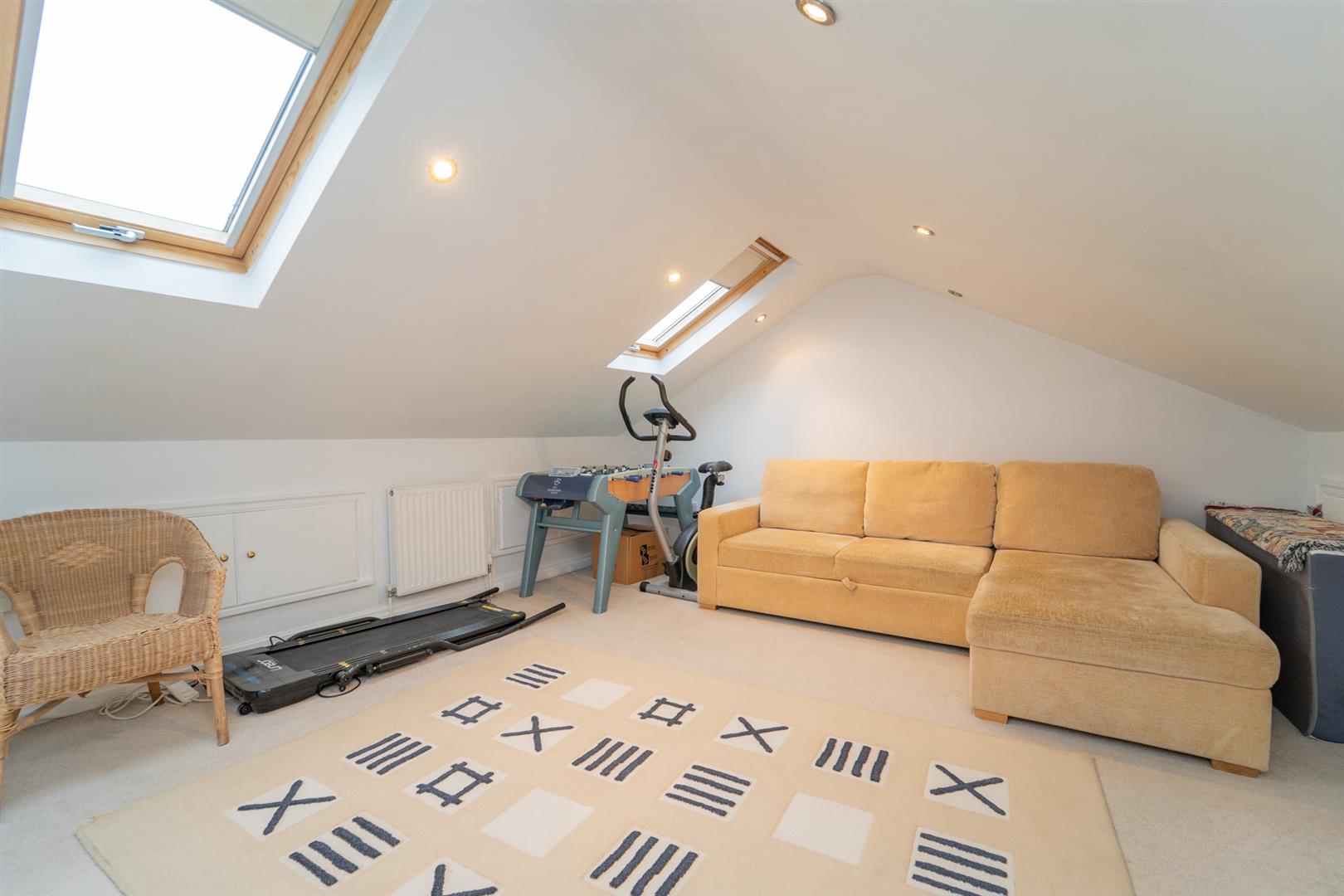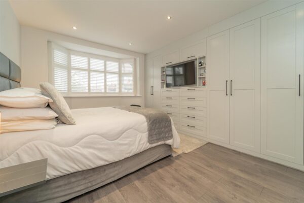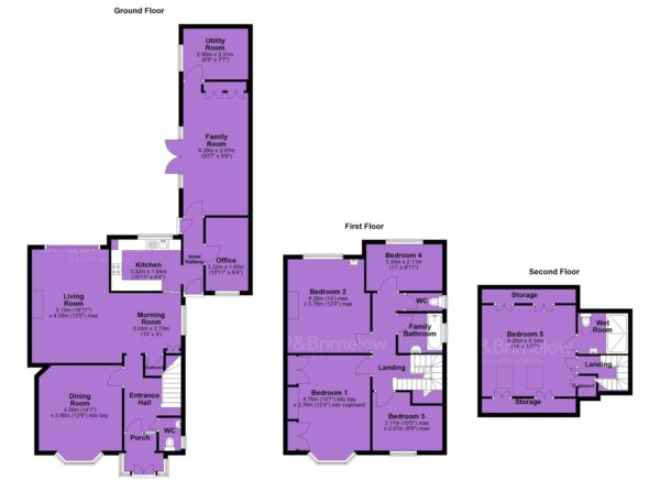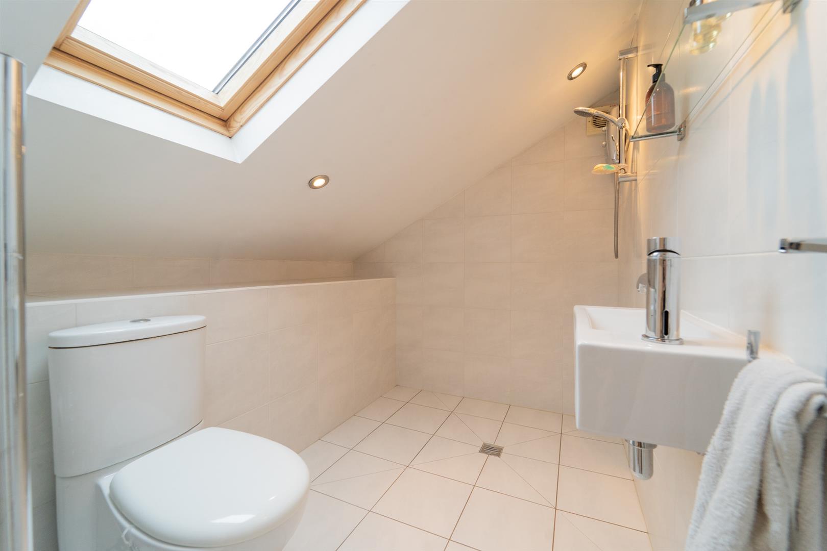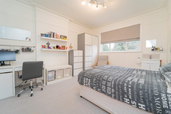 The first floor comprises four bedrooms, a two-piece bathroom, and a separate W.C. Stairs then lead to the second floor, which features an additional double bedroom with ample storage, along with a three-piece wet room.