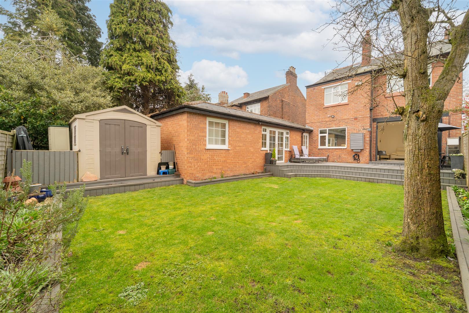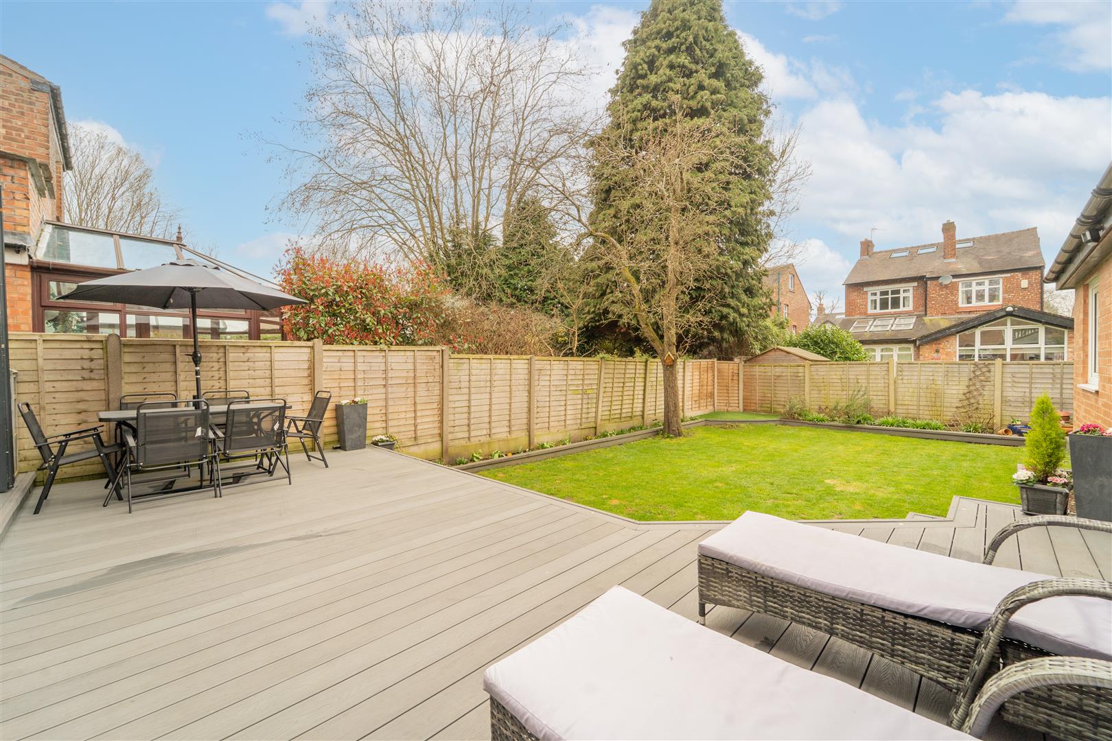 To the front aspect there is a low level brick boundary wall with a mature privet hedgerow. Mainly lawned with Planted flowerbeds and a paved driveway, providing ample off road parking for several vehicles. There is an enclosed lawned rear garden with a raised composite decked patio, ideal for a table and chairs and raised and planted flowerbeds.