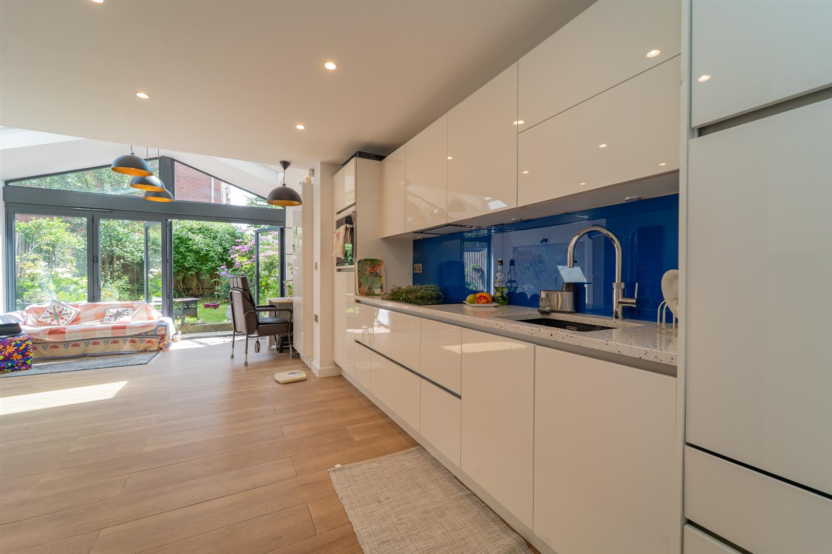 In brief, the well-planned accommodation consists of; A porch with a useful storage cupboard, an entrance hall, a modern four-piece bathroom complete with talk in shower, there is access into the garage via the bathroom. There is an impressive open plan fully fitted kitchen/ dining room, complete with a lounge area with bi-fold doors opening out into the rear enclosed garden.