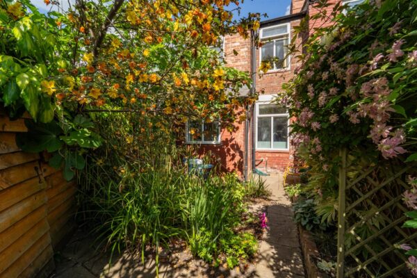 To the front aspect there is a low-level brick boundary wall with a mature hedge row above, a pathway leads to the front door. To the rear aspect there is a patio area ideal for a table and chairs, flower beds with a variety of plants, shrubs, bushes and flowers. A timber gate allows access into the communal service alley, the garden is enclosed with brick built walls to the neighbouring properties.