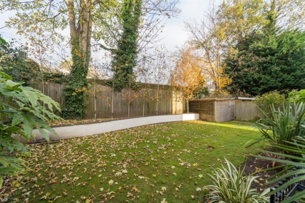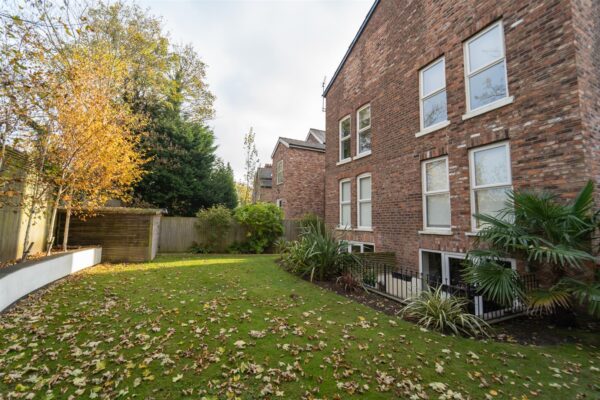 To the front aspect there is a low-level brick boundary wall, mature trees/bushed and shrubs sit in the front garden. There is a pathway leading to the front door. To the rear aspect there are well maintained communal gardens with an array of plants/ bushes and trees, to the rear of the garden there is a communal bike storage shed.