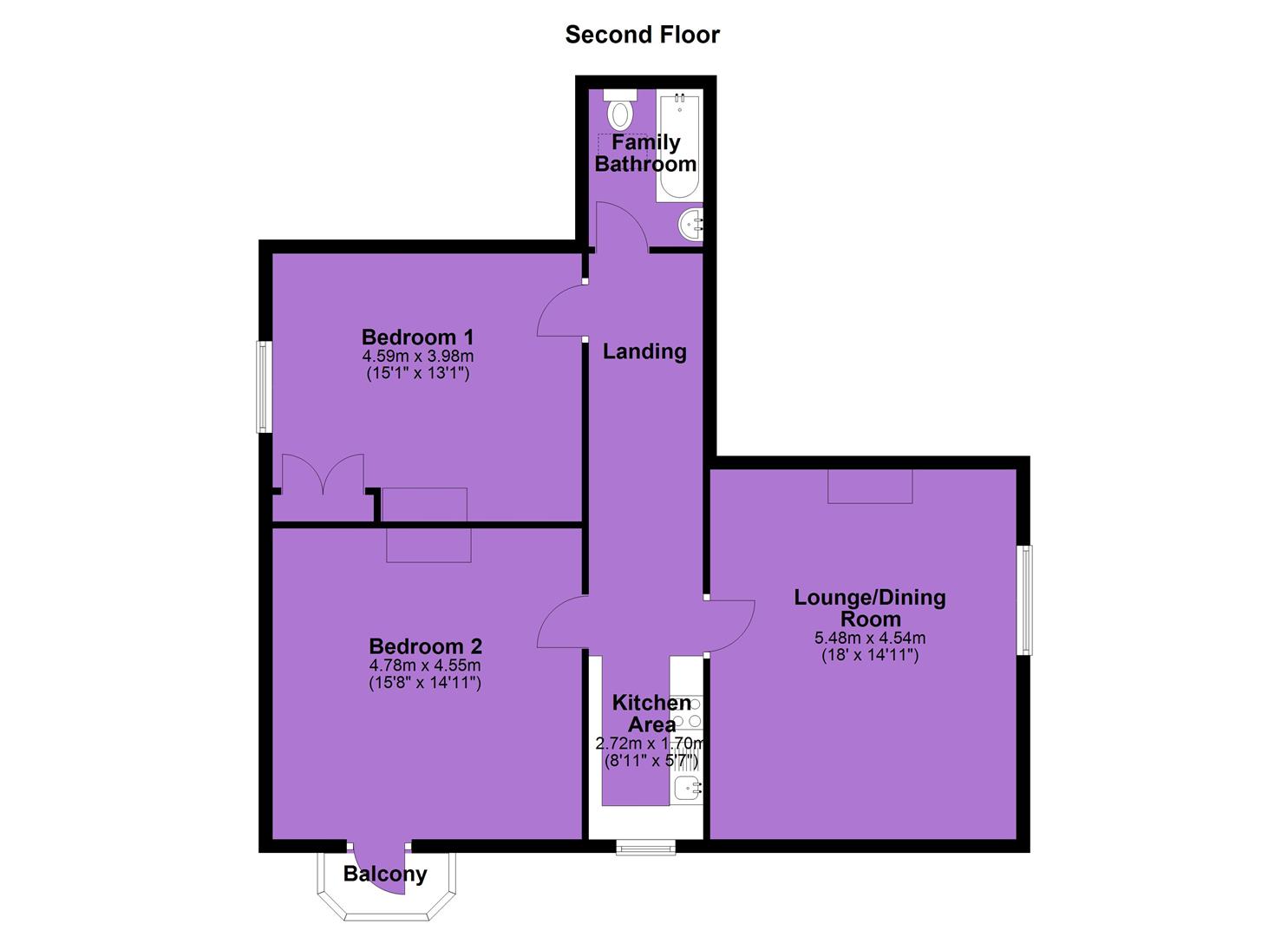 We have used apt 4 in all marketing details. This thoughtfully designed apartment is positioned on the top floor. The well-planned accommodation comprises; communal entrance hallway with stairs leading to all floors, a private entrance on the first floor with stairs leading to the top floor. A landing leading to two double bedrooms, a lounge/dining room, a fitted three-piece white bathroom suite, bedroom two has access to a balcony area. A fitted kitchen with a breakfast bar area.
