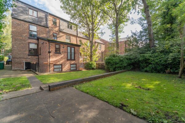 To the front, there is a low brick boundary wall and a concrete driveway providing communal off-road parking. To the side, a mature hedgerow separates the property from the neighbouring properties. A metal gate gives access to the rear communal garden. The rear features an enclosed, split-level communal garden, bordered by a brick wall and timber panel fencing adjoining neighbouring properties. The space is mainly lawned, complemented by well-established flower beds, mature shrubs, and trees. A patio area offers an ideal spot for outdoor seating, with a designated bin storage area also provided.