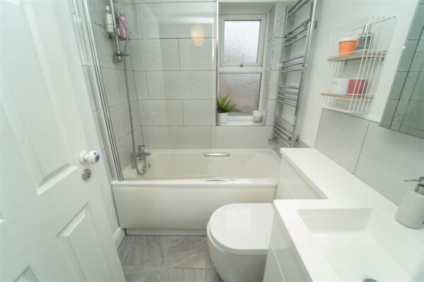 The property benefits from well-maintained communal gardens, including off-road parking to the front and a pleasant, enclosed split-level garden to the rear. The rear garden is mainly lawned with established planting and a patio area, providing an attractive shared outdoor space,ideal for relaxation and seating.